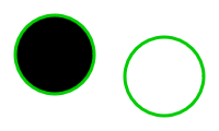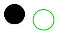 Wir platzieren linksseitig einen gefüllten Kreis (Farbe Schwarz ist voreingestellt) und rechtsseitig einen leeren Kreis mit einem breiten, grünen Rand. Sollte eigentlich kein Problem sein.